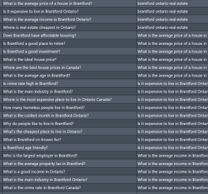 Using the PAA keyword you get to cover every (big and small) search that people have done – relating to property in Brantford – and get all that traffic organically and via social media.
